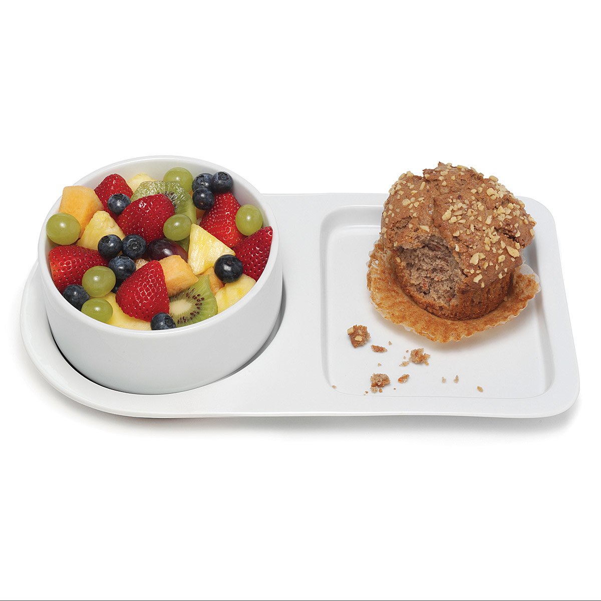 Nestling cozily together, this soup bowl and sandwich tray duo helps you indulge your comfort food cravings. Custom designed to serve up savory tomato soup and a golden grilled cheese sandwich, these ceramic counterparts eliminate the awkward balancing act of enjoying your favorite twosomes. Safe for use in the oven, microwave, and dishwasher, the simple white serving pieces are always ready for those quick and comfy meals. Made in China.