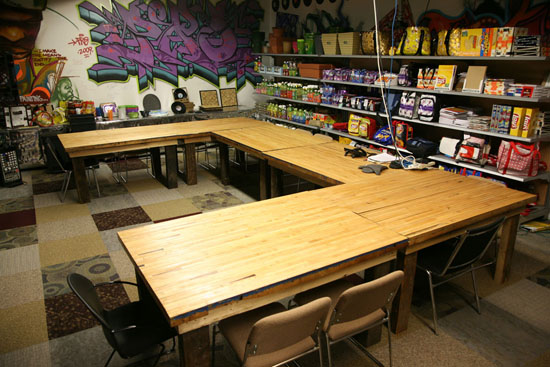 Table made of an old bowling alley | TerraCycle Studio Tour | UncommonGoods