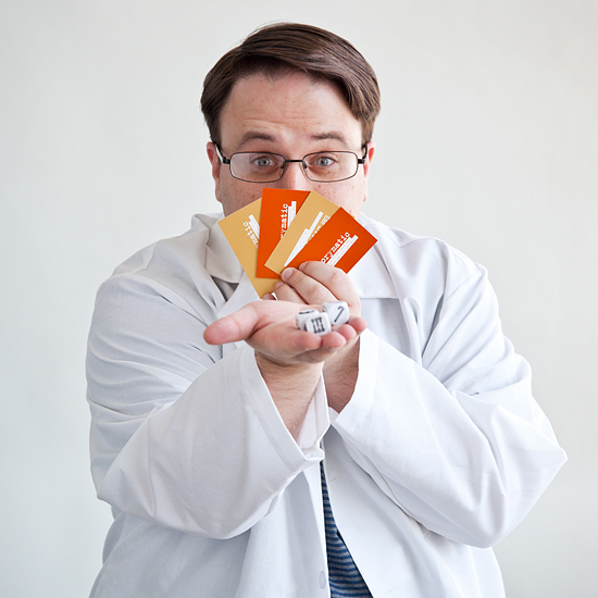 The box holds two different colors of cards with words on them, and what looks like a pretty involved instruction book. Unsure what I’m supposed to do, I start reading the instructions and discover that the process is actually very simple. There are “gold” cards that show personal attributes that combine to form a character, and “copper” cards displaying plot elements. The instructions look long because contain a number of ways to use the cards, but they all basically boil down to this: “Draw a couple cards of each color. Build a story around them. If you get stumped, draw more cards.”