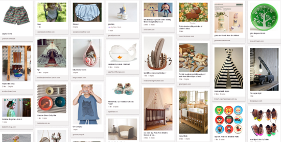 Janet Sherman who has a kids clothing line, has a few really great boards for kids and babies–and I just dig her style. It’s playful and carefree.