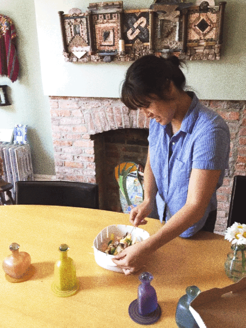 2. We each made 4 skewers and made sure they each were unique. Some had more veggies; some were all veggies, while others had the poultry side by side, or with potatoes and eggplant as separators. This was to see how the skewers would cook in different scenarios.