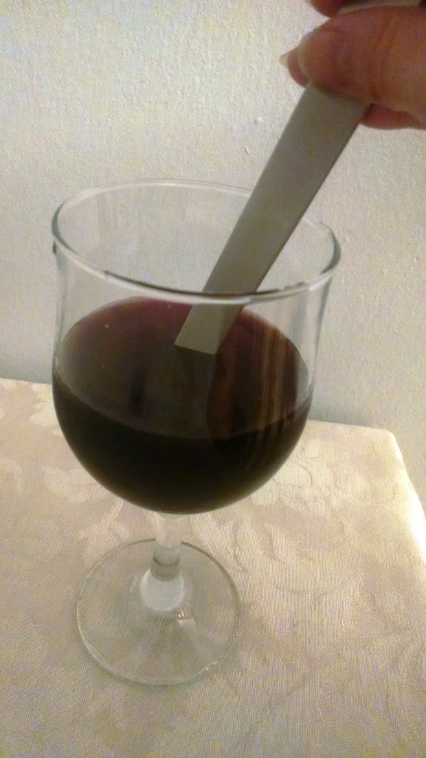 I invited over a few of my science-minded friends who also enjoy wine to join me for a tasting and dinner. The documentation that comes with the tool suggests that you taste our un-“aged” wine, and then dip the tool in for a second, taste again, and so on until you are pleased with the flavor. I felt it would be too easy for us to have a placebo effect if we did it this way, so instead I put out three wine glasses for everyone, and poured three different “ages” into the glasses so that we could taste side by side and be absolutely sure of what we were experiencing.