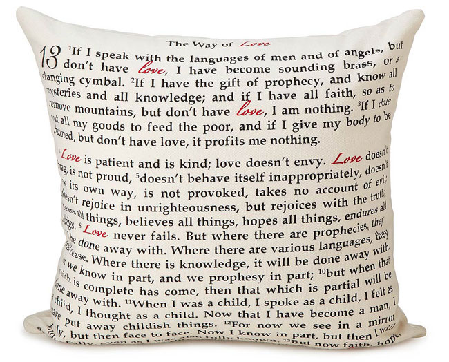 Love is patient, love is kind; love is also comfy, like this literary pillow.