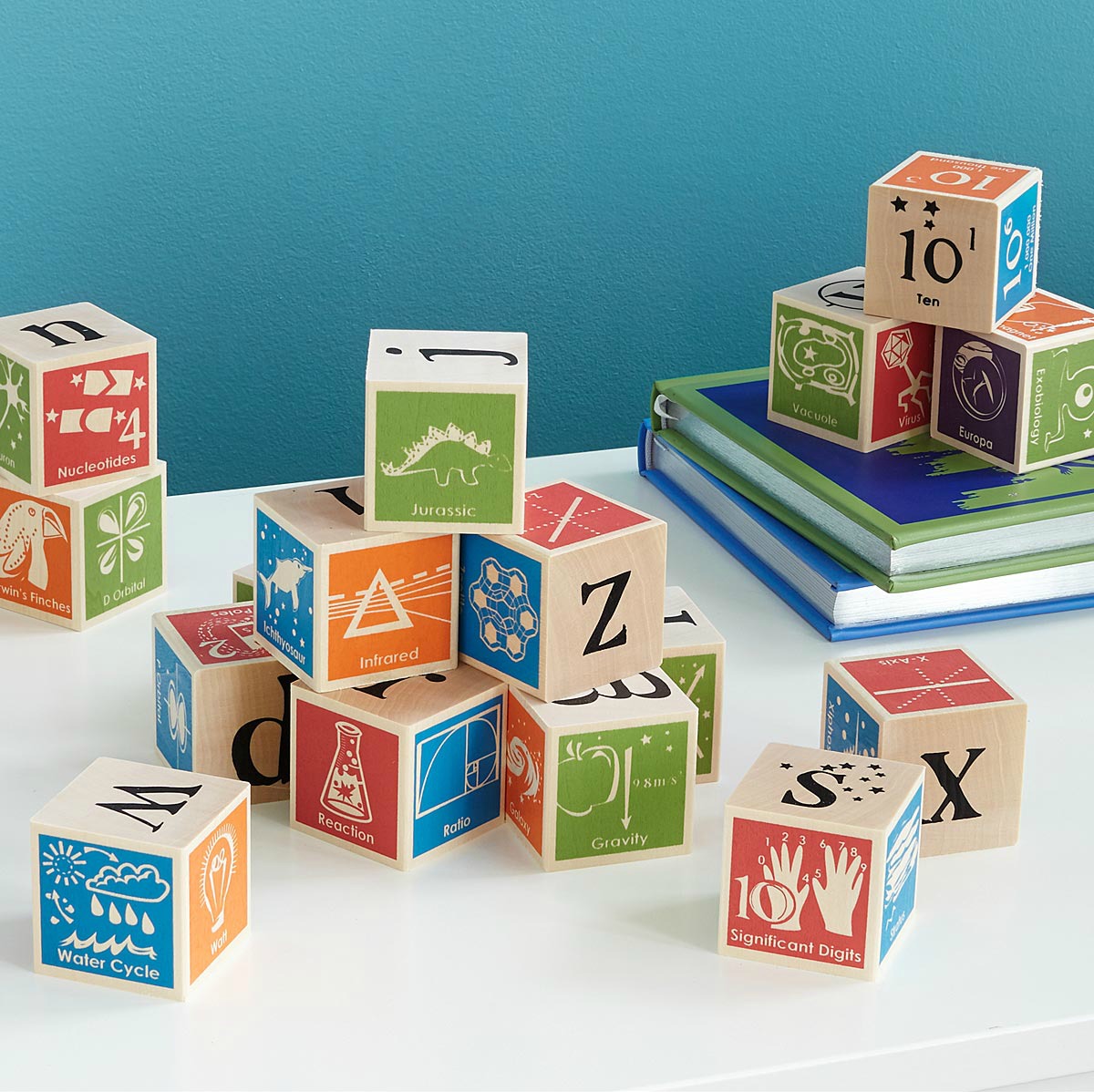 Typical blocks settle on “a is for apple,” but according to this clever set, “a is for absolute zero.” Hypothesis: Your tiny scientist will love them.