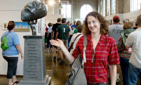 Me, next to a statue honoring the dumplings of the world, in the Fine Arts Center at the Minnesota State Fair
