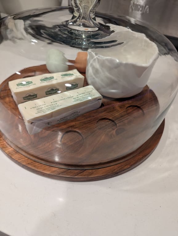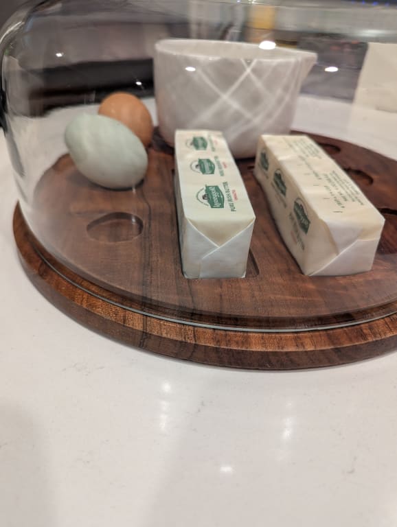 Product is poorly made. I had to return the first one, and the glass lid of the replacement I received still does not fit well to the wooden base. There are no care instructions. Can the wood base be washed? Or should it be oiled? This item cost over $80 with the shipping. It is not worth it.