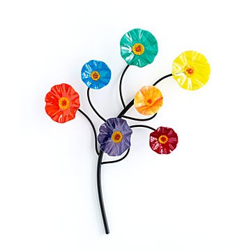 The flowers are the following colors; red, green, yellow, blue, aqua, and purple.