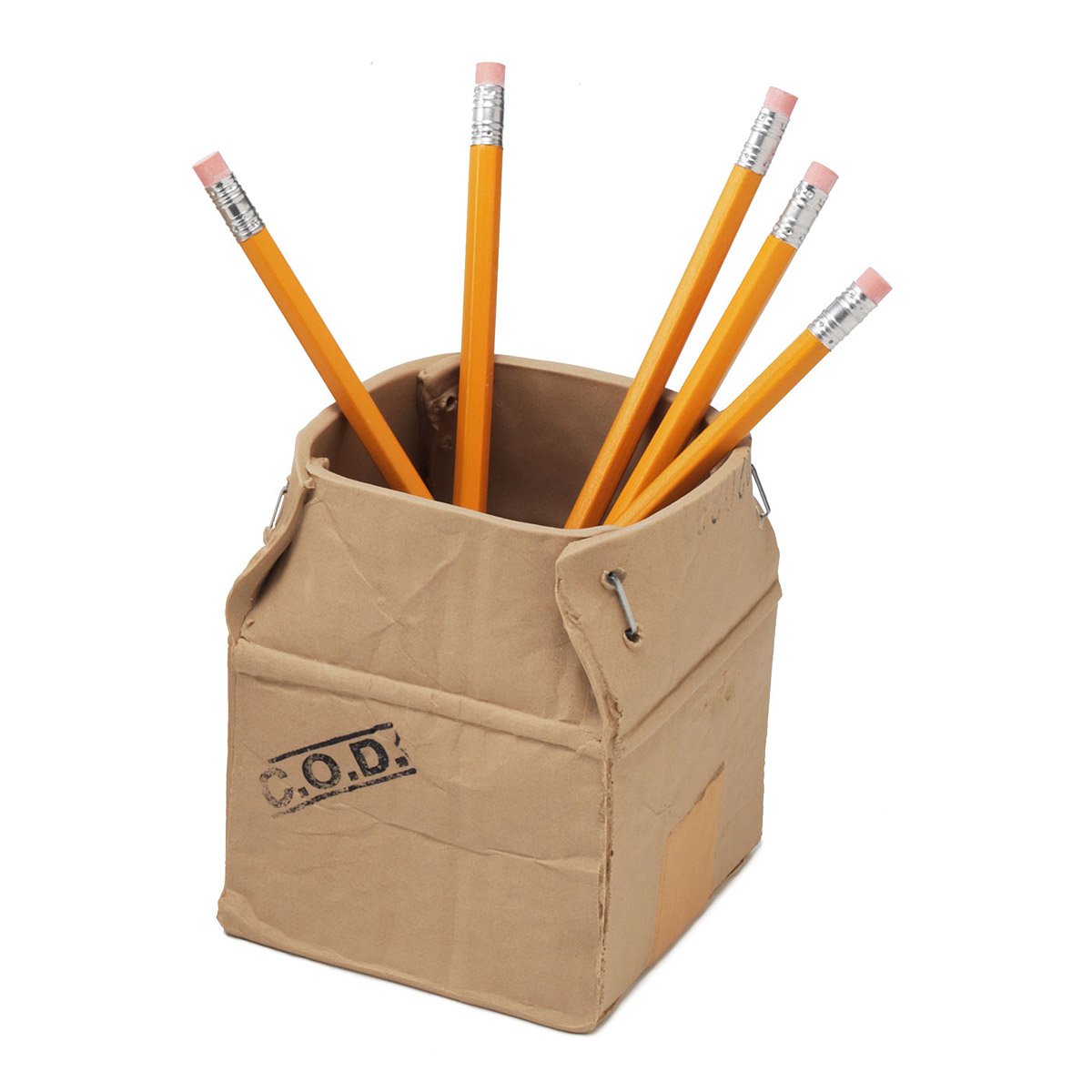 You will most certainly do a double-take when you see this unassuming cardboard box (we all did!). Handmade by Michel Harvey, this charming container is actually made of porcelain. From tiny wrinkles and folds, to staples and a strip of tape, the container amazingly repeats the subtle details of a real cardboard box. Perfect for pencils, pens, envelopes and more! Handmade in Canada.