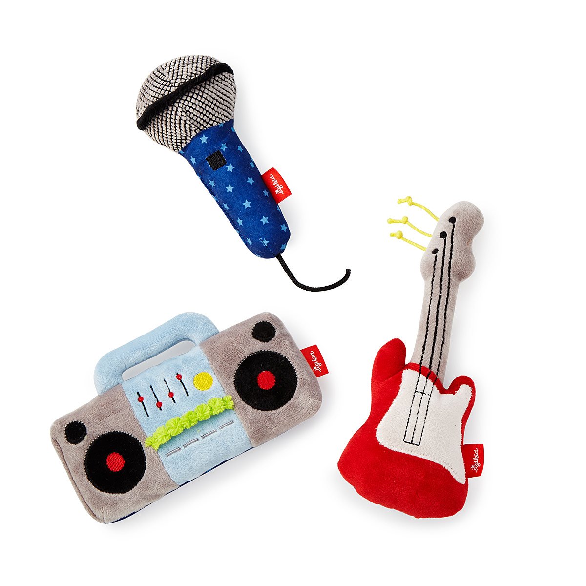 Baby's fine motor skills are still developing, so they're probably not ready to practice guitar chords just yet. Grabbing these music-themed grasp toys? Now that's their jam. Each of the plush instruments provides textures and sounds to keep your kiddo entertained: The guitar is a rattle, the boombox crinkles, and a squeaker makes the microphone extra squeezable. They also make cute photo props. (Maybe for an album cover?) Made in China.